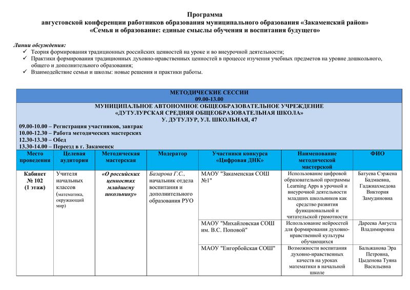 Программа Августовской Конференции 2024
