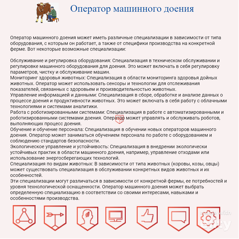 Описание профессии оператор машинного доения. Узнайте как стать оператором машинного доения, где получить образование. Сколько зарабатывает, суть деятельности, плюсы и минусы профессии: решите, стоит ли учиться на оператора машинного доения.