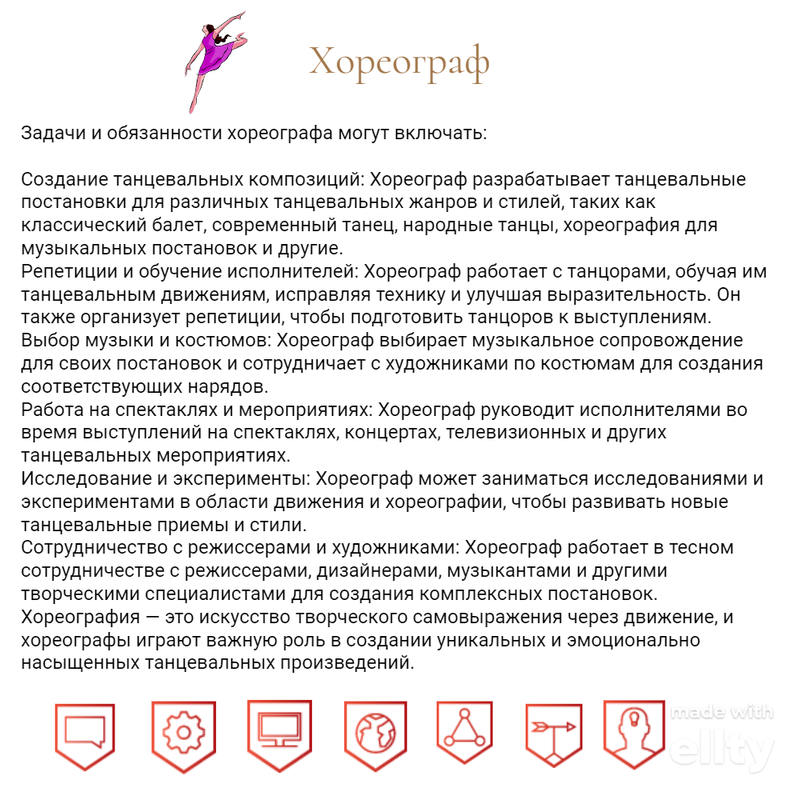 Описание профессии хореограф. Узнайте как стать хореографом, где получить образование. Сколько зарабатывает, суть деятельности, плюсы и минусы профессии: решите, стоит ли учиться на хореографа.