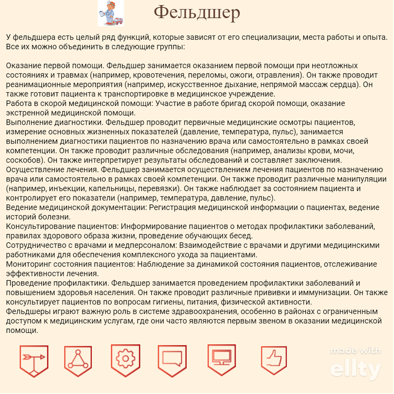 Описание профессии фельдшер. Узнайте как стать фельдшером, где получить образование. Сколько зарабатывает, суть деятельности, плюсы и минусы профессии: решите, стоит ли учиться на фельдшера.